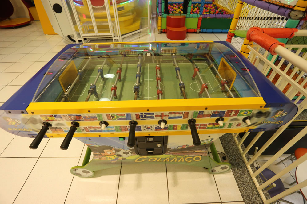 O velho e tradicional pebolim aliado a tecnologia, possui marcador de placar eletrônico e som com os principias lances do jogo. O pebolim é uma atração para adultos e crianças.
